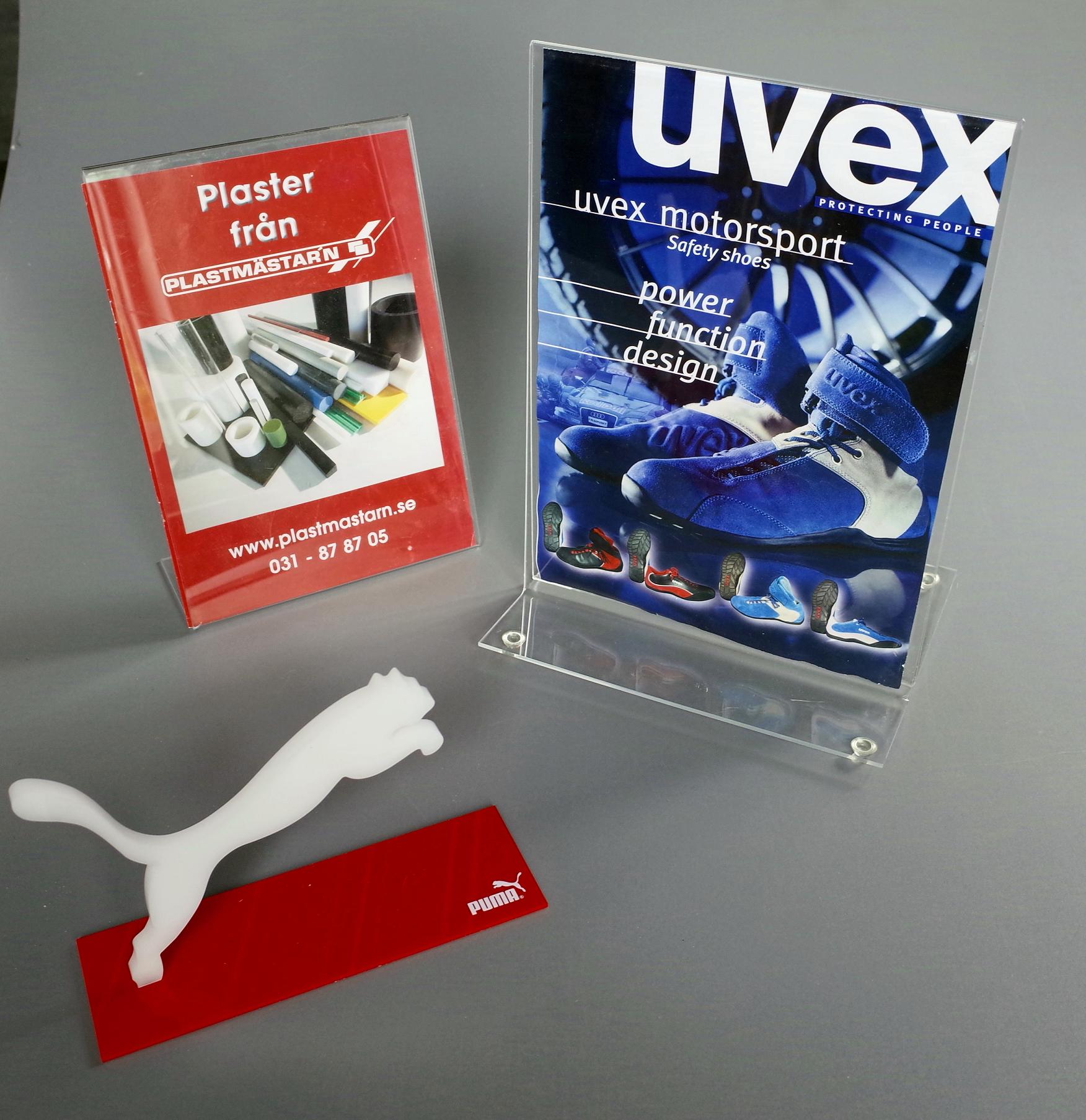 Plastmästarn AB är marknadsledande i Sverige när det kommer till att leverera ett varierat sortiment av plast till exponeringsprodukter för skylt, reklam och butiksinredning. Framför allt Plexiglas har fantastiska egenskaper och ett fördelaktigt utseende som passar perfekt för exponering. Basen i vårt sortiment utgörs av lättbearbetade halvfabrikat av Plexiglas i både extruderad och gjuten kvalitet. Vi framställer din reklamplast och det är bara din fantasi som sätter gränserna.